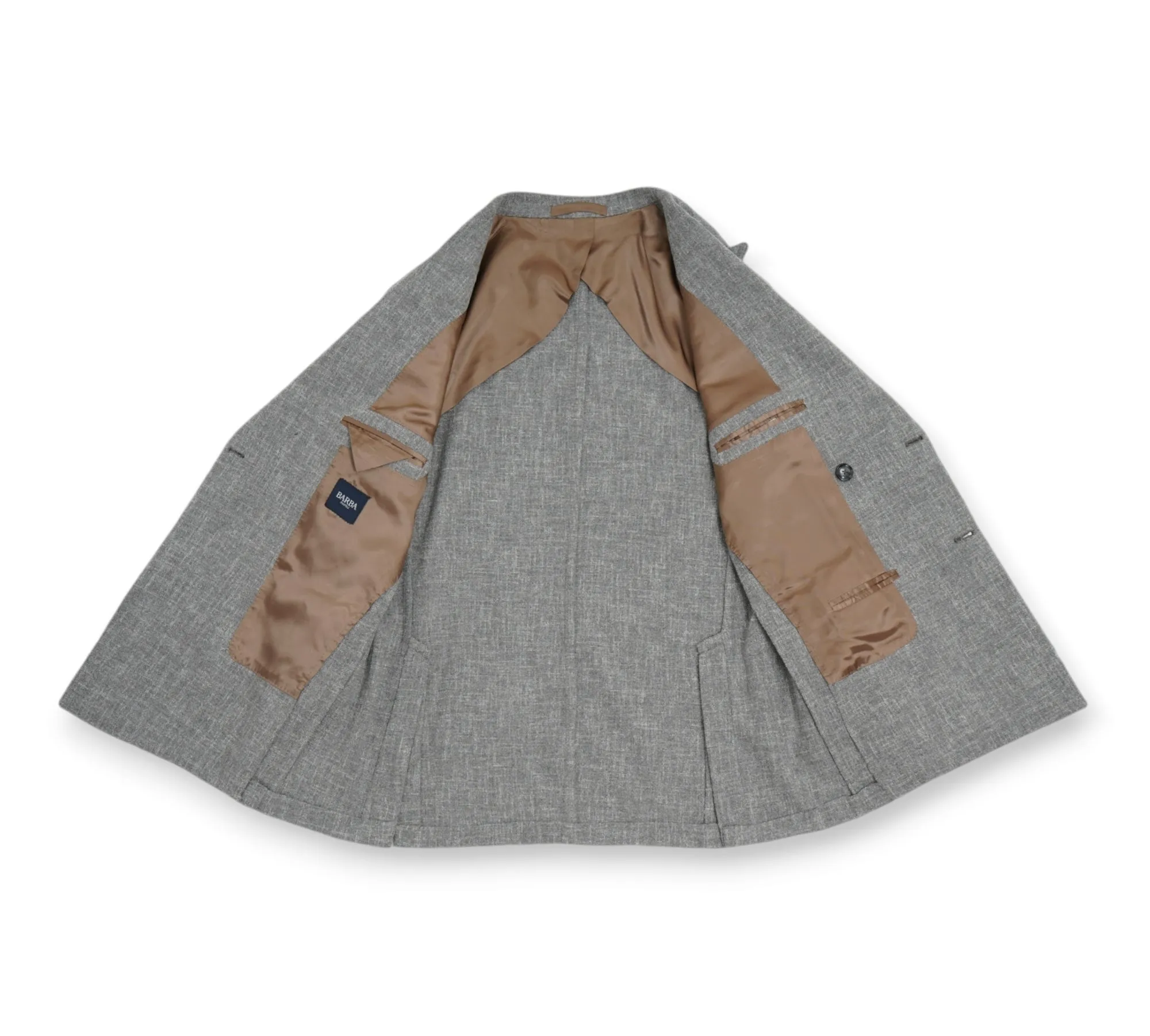 Soft tailored sports jacket from Barba Napoli, quarterly lined and cut from a grey melange wool and polyamide mix cloth.